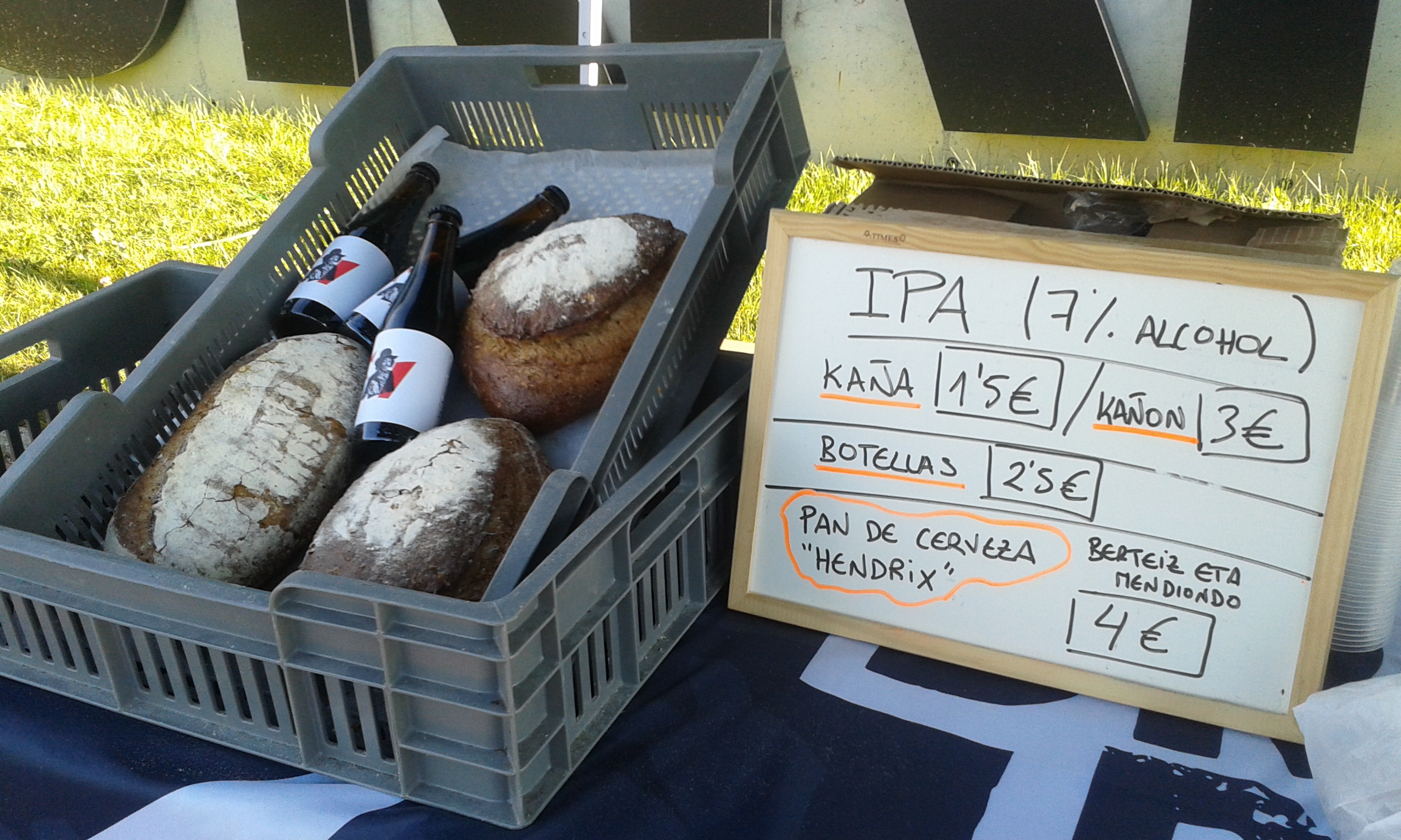 Destacar que Mikel de Drunken Bross llevaba pan hecho con cerveza, concretamente con Hendrix. Pudimos llevarnos ambos productos para probar en el txoko al dia siguiente. Casualmente en la página de Etxeandia habiamos leído que estaba elaborando “cerveza de pan” y aquí nos encontramos a los dos y Drunken Bros presentaba “pan de cerveza” (Hendrix, una stout)