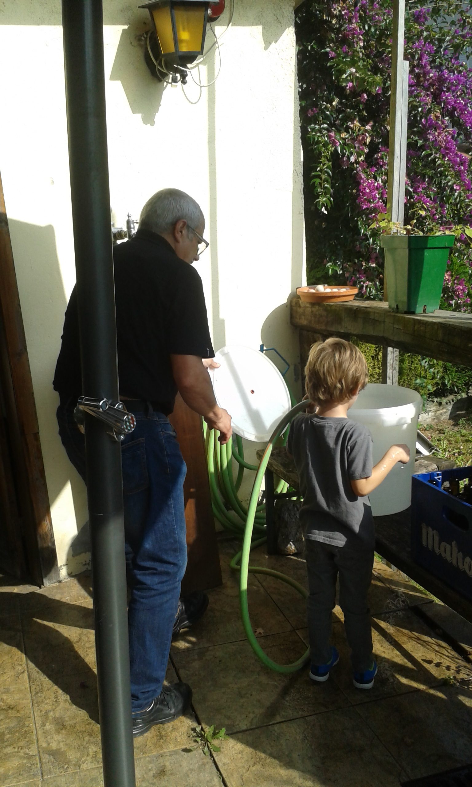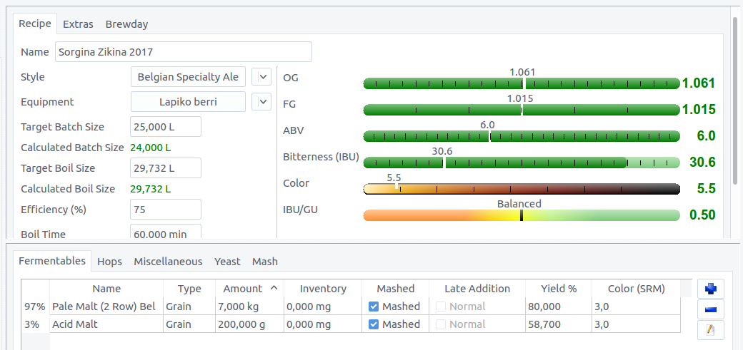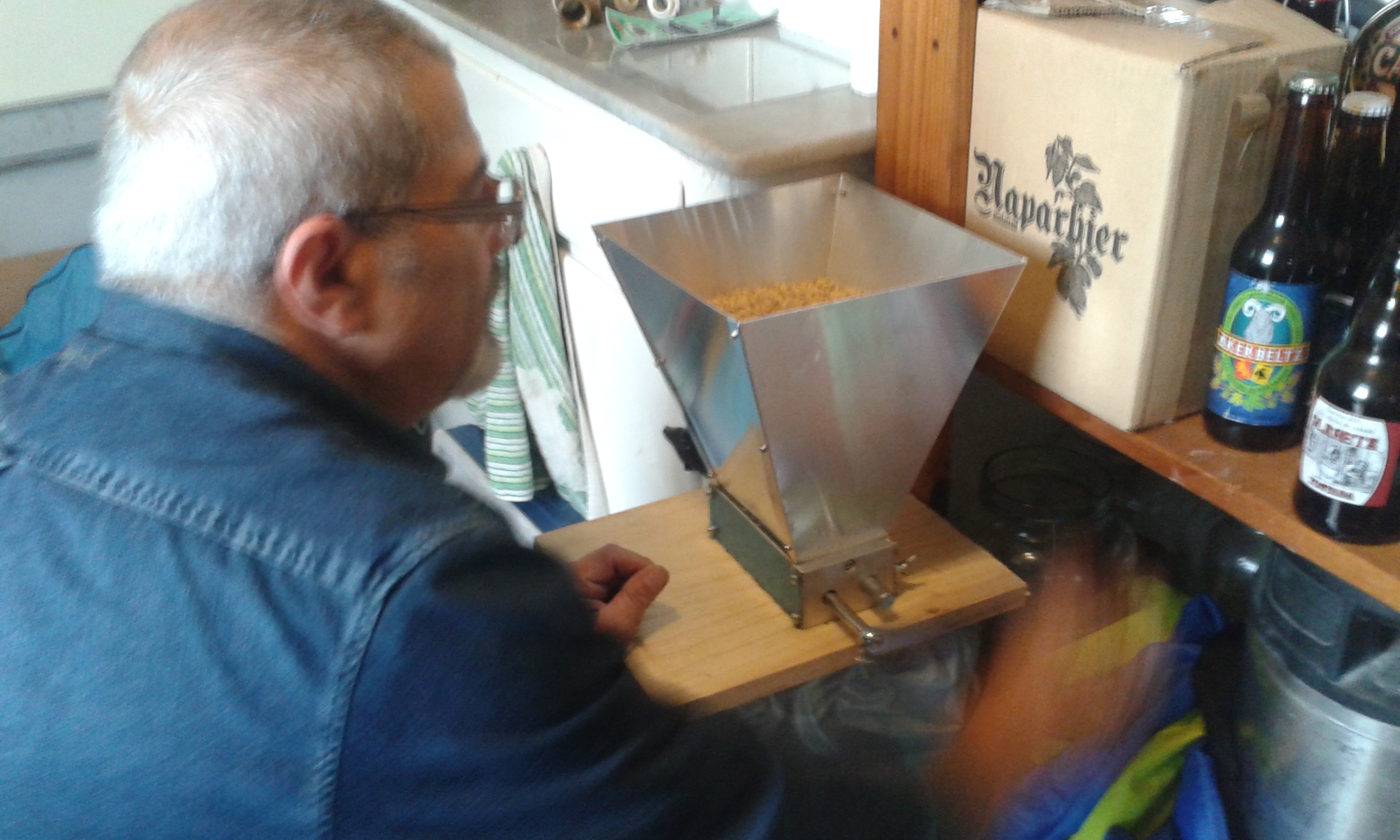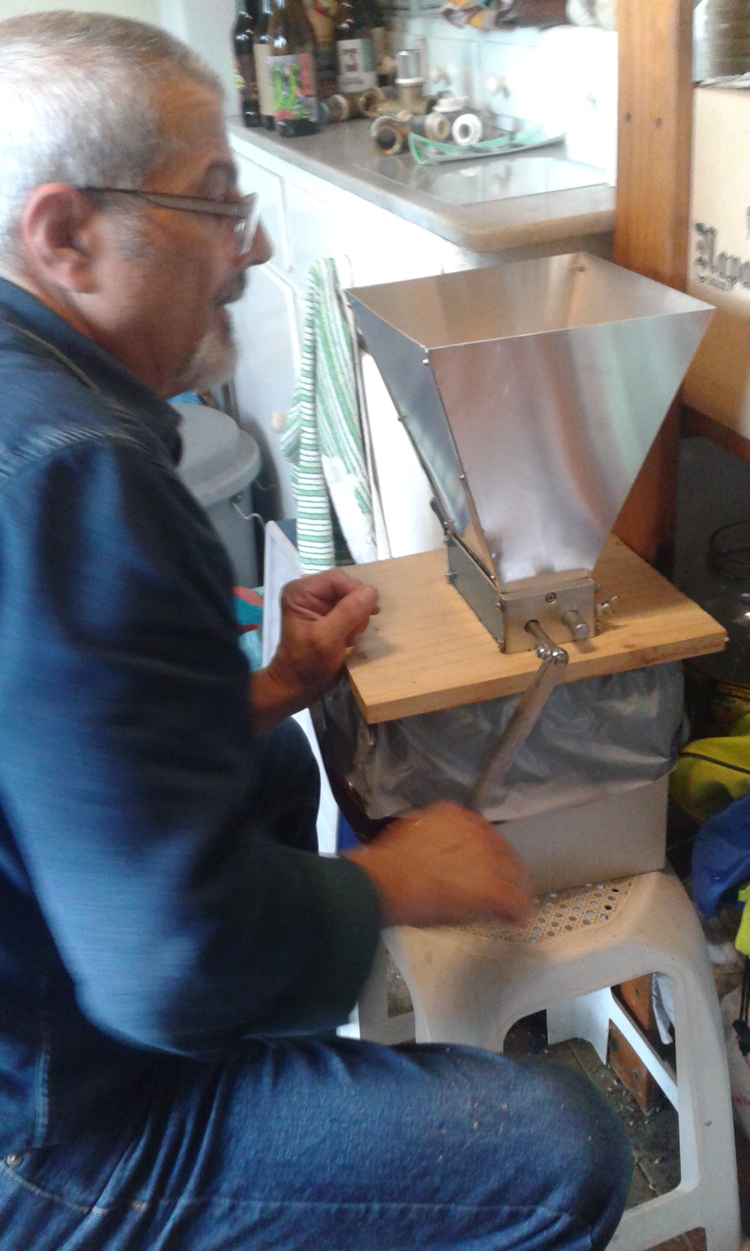 Malta Pale Ale besterik ez dugu erabili, eta 200 gramo malta garratza mostoaren Pha 5,4 izateko. Gure errota berria estreinatu genuen eta mazerazioa egin baino lehen 7 kg malta ehotu genituen