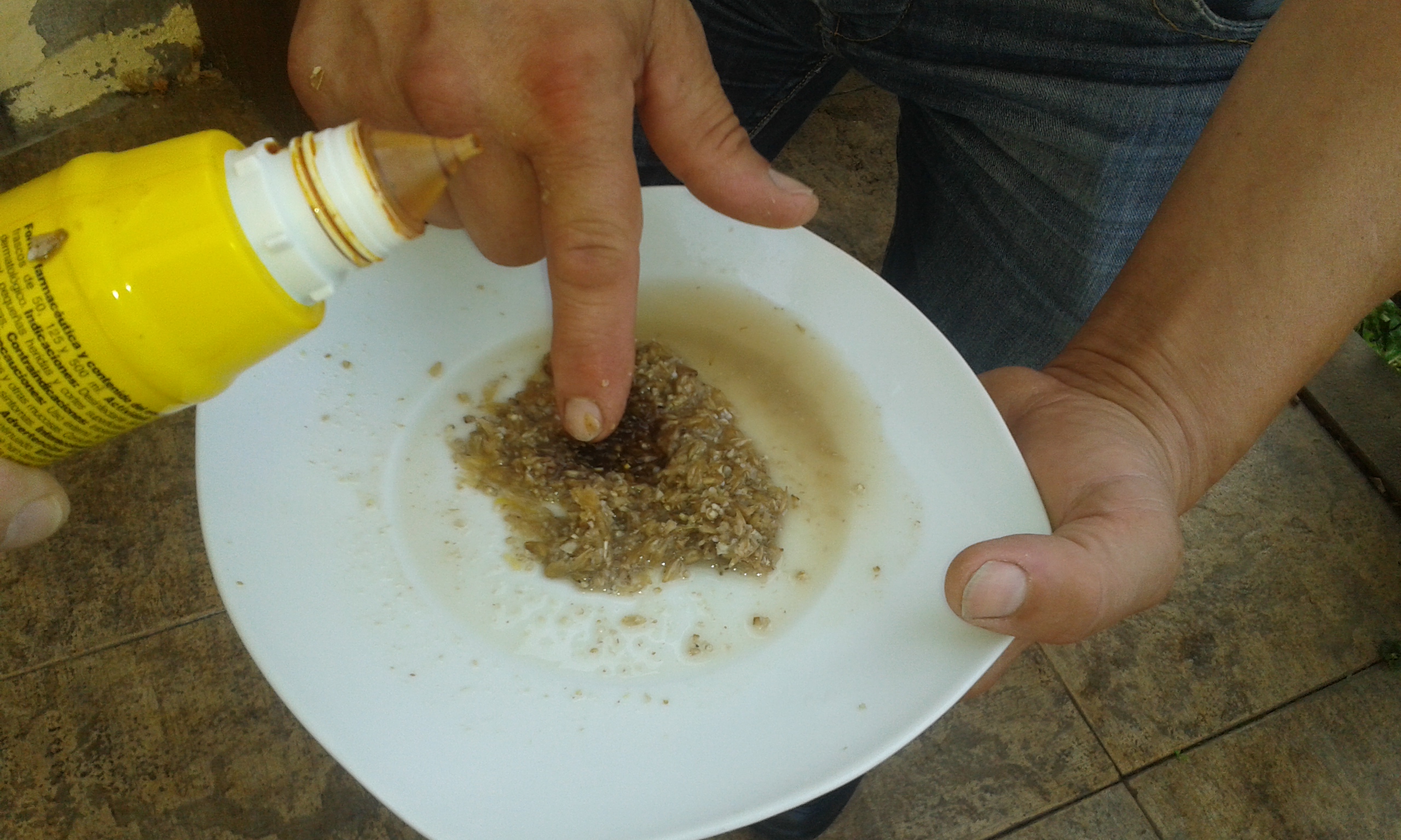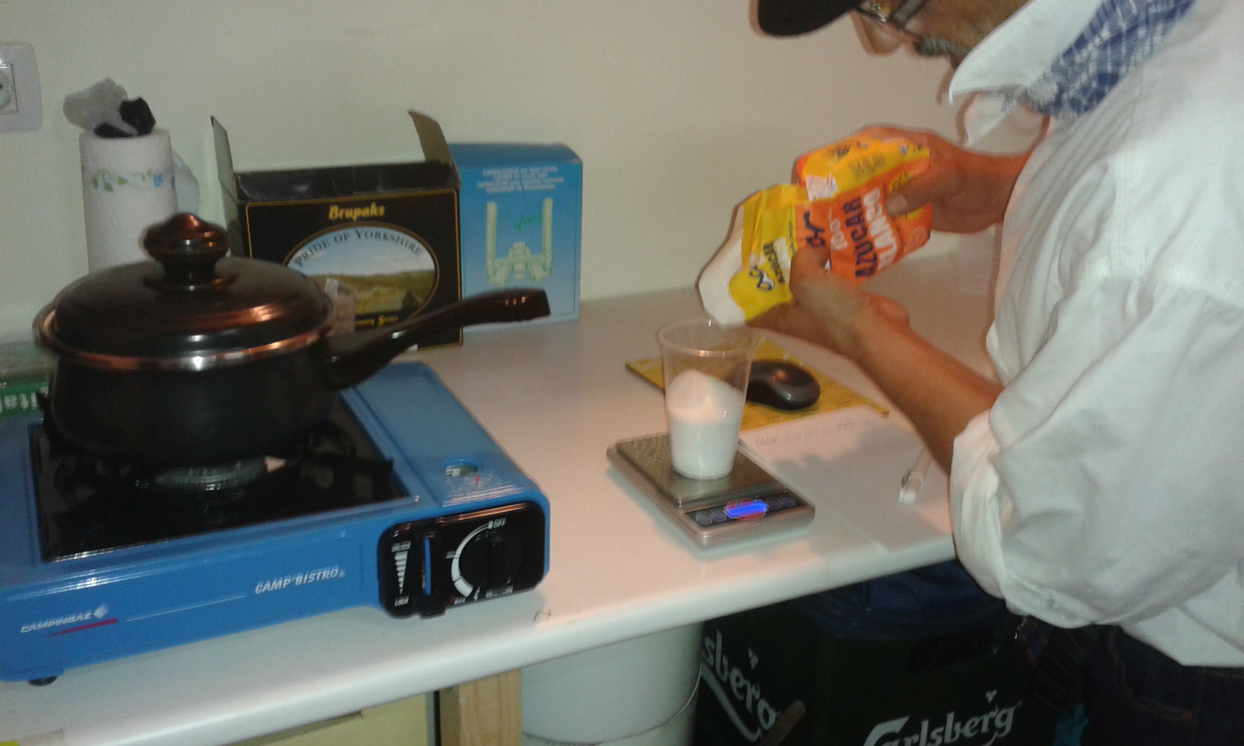 Gas karbonikoa sortzeko, botilaz botila eta xiringa batekin gehituko diogu ura azukrearekin (ura berriro irakita). Era onena, ontzi berean garagardo garbia (legamirik gabe) eta azukrea nahastea da, baina guk, etxeko ontzi-garbigailutik botilak pasatu ondoren, ura esterilizazio produktuarekin bete genituen, eta esterilizatuta egonda, garagardoa hartzidura ontzira pasatu genuen (legami hondarrak bereizteko). Horrexegatik, azukrea botilaz botila gehitu behar genuen. Erabiltzen dugun neurria 6 eta 6,4 azukre gr/garagardo lit tartea da, 100 ml ur irakita 200 ml bolumena sortzen da. 63 botila ditugunez (0,33clko botilak 21 garagardo litrotarako), botila bakoitzean 3 ml utziko ditugu xiringaz. Botilaren barruan, tapoia jarritaz, geratzen diren legamiek eman diguten azukrea jango dute eta gas karbonikoa sortzean gure garagardo karbonatatu egingo da.