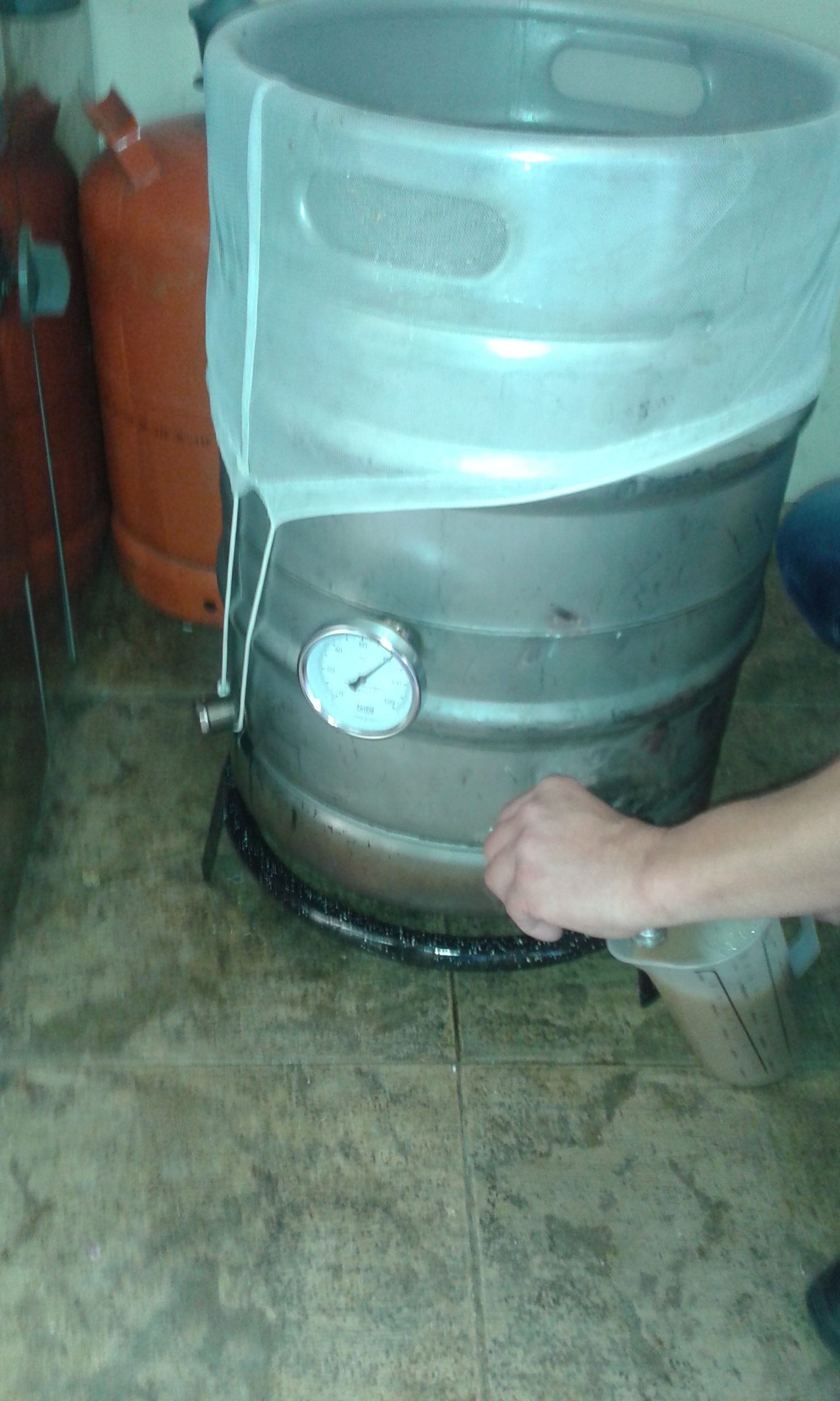 Bukatzean “garagardoa” ia 100ºtan dago eta ur hotza serpentinetik pasatzean, 25 minututan 20-25ºtan izango da. Hotaz, hartzidura egiteko ontzira pasatzeko prest dago eta legamiek lan egiteko. Legamiek lan egiten dute, hau da azukrea alkohola eta gas karboniko bihurtzen, 16-24ºarteko tenperatura, beraz gure garagardoari tenperatura lehenbailehen jaitsiko diogu horretara legamiak gehitzeko. Legamiak birpiztu behar ditugu, hau da, ura irakiten dugu eta hozten uzten dugu, 30ºtan (edo gutxiago) izan behar delako legamiak gehitzeko alde batean. Utziko dugu 15-20 minututan legamia “esnatzeko” (ikusiko duzue handitzen direla eta “baileis” bitsaekin ematen dutela). Garagardoa 20ºtan (gutxi gorabehera) eta legamiak birpiztuta daudenean, hartzidura ontzian sartuko dugu elkarrekin.