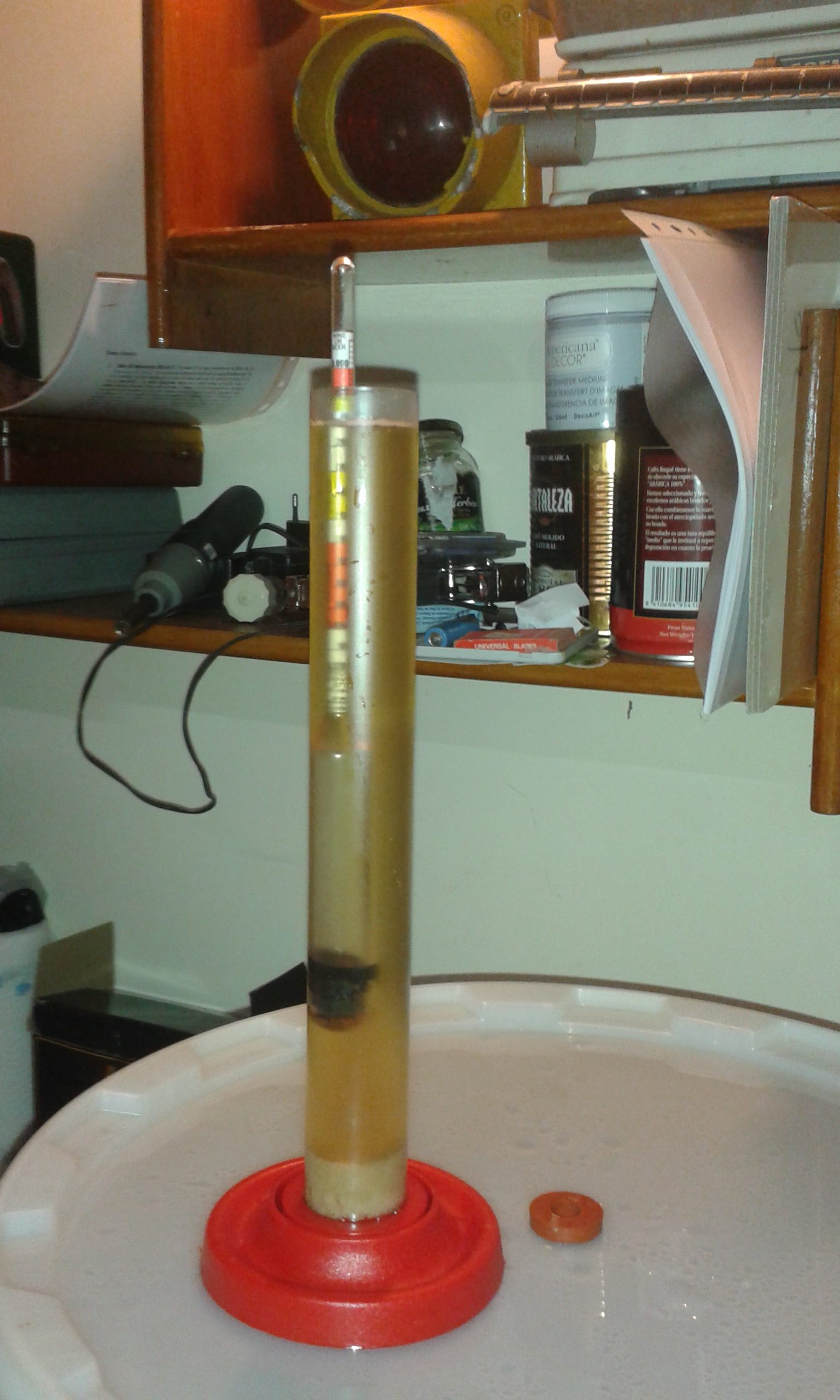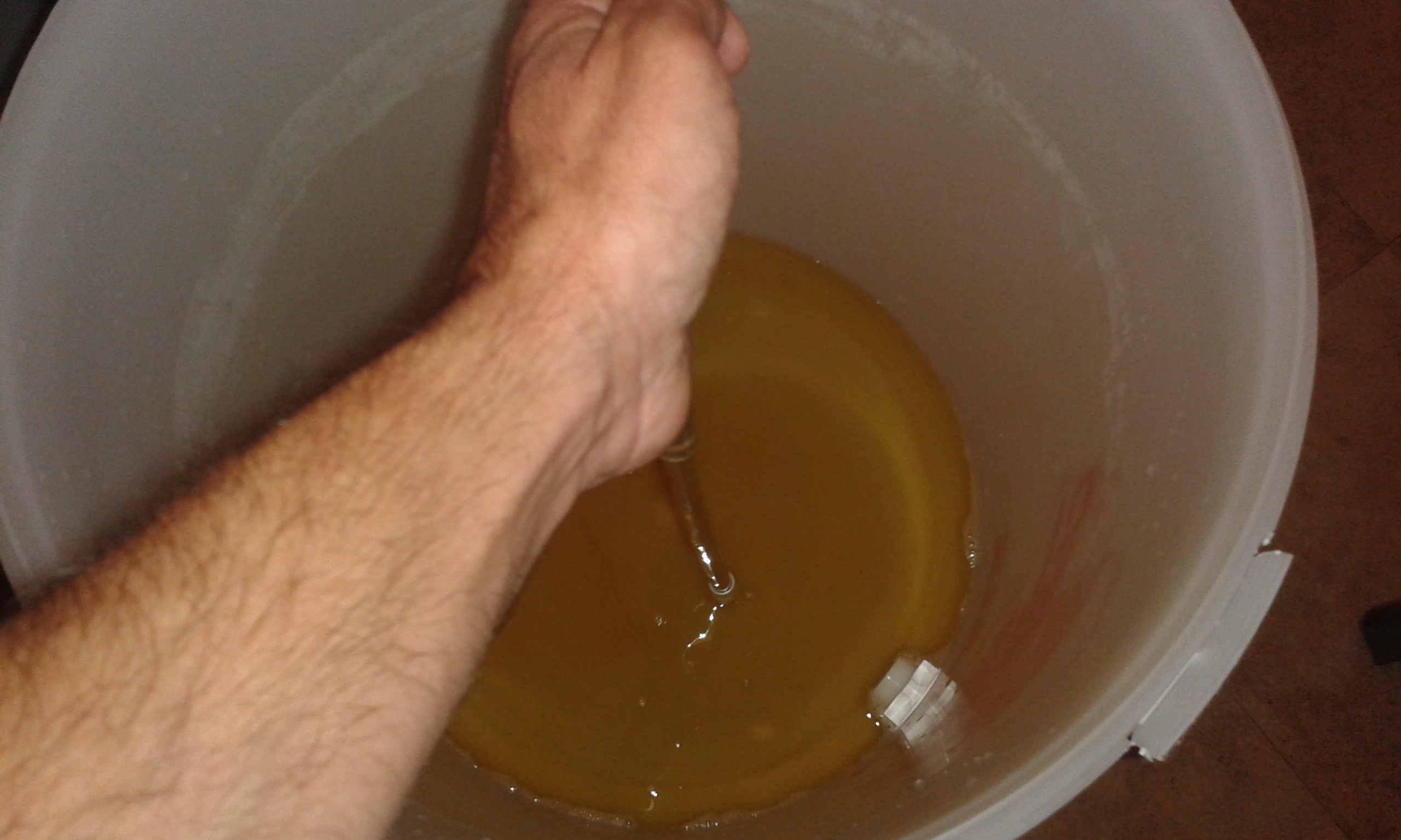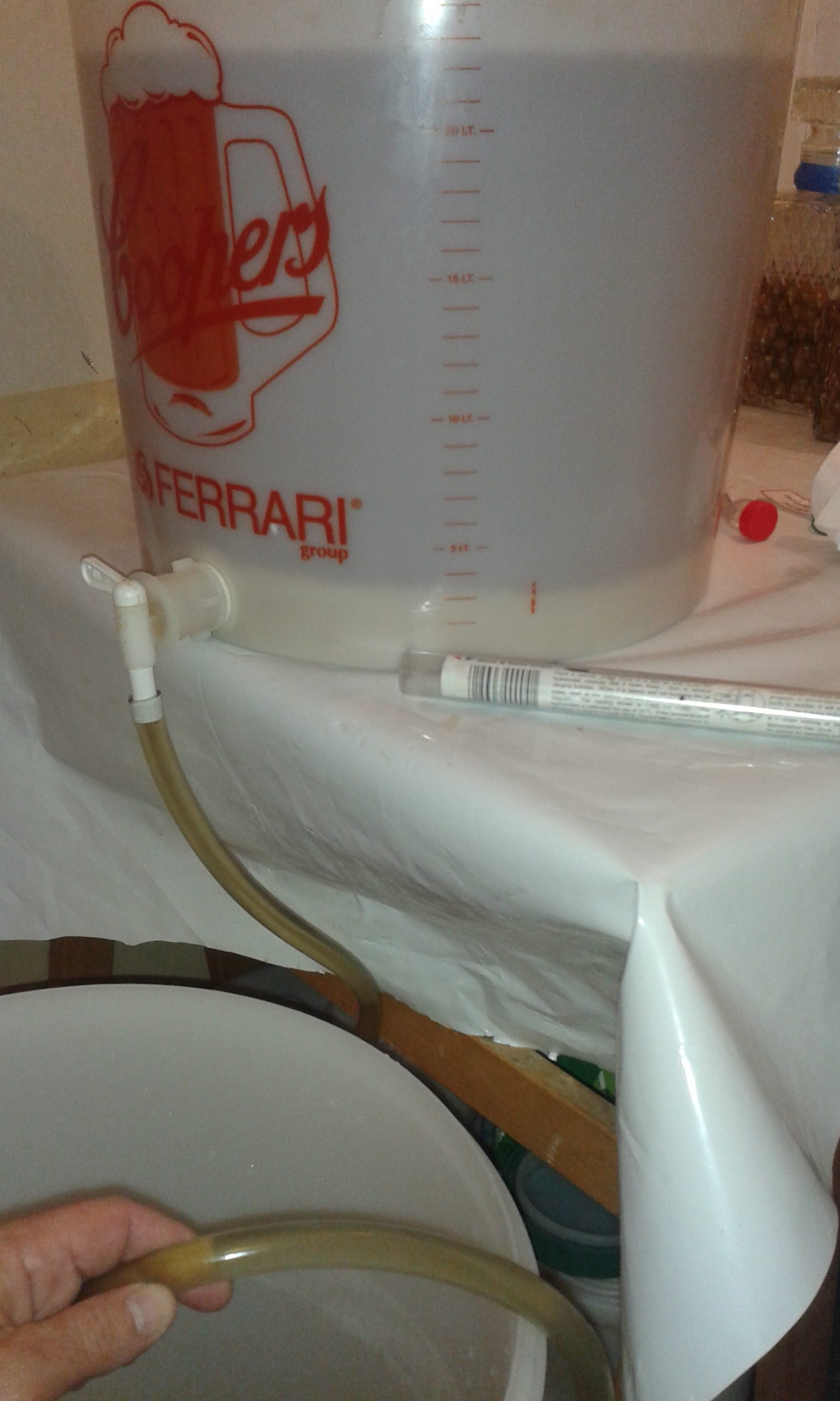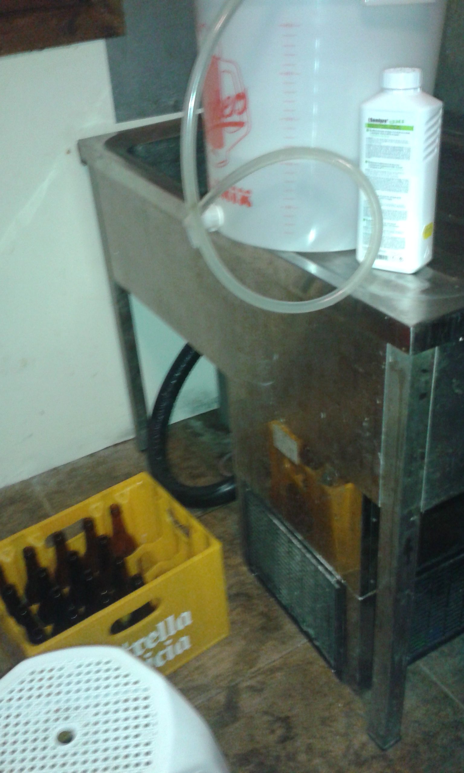 Hartzidura egin ondoren (3-5 egun), ontziz aldatuko dugu legamiaren hondarrak kentzeko eta garagardoak botiletan gas karbonikoa sortzeko (azukre pixka bat gehituz): garagardoa botilaratzeko prestatzen dugu. Hemen, 21 garagardo litro lortu ditugula ikusten dugu.